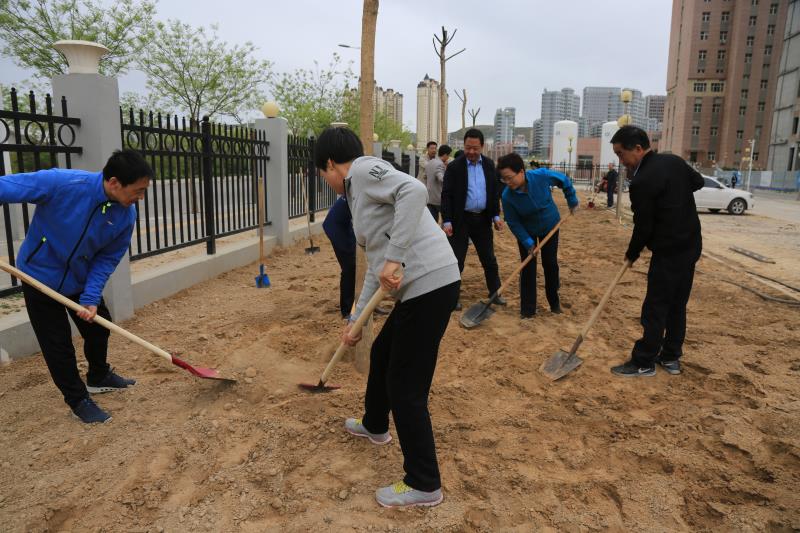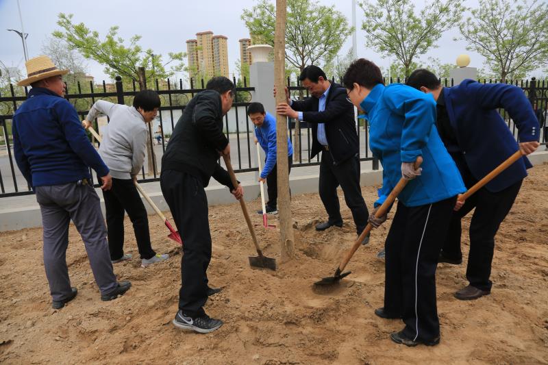 植树现场,市卫计委党组书记、主任冯爱平与市人民医院院长李如尧及机关干部、医务工作者一起拿起铁锹、水桶埋头植树。经过近1个小时的劳动,30棵槐树在院区绿化带里“安家落户”,为院区环境、患者休闲添上了一片新绿。