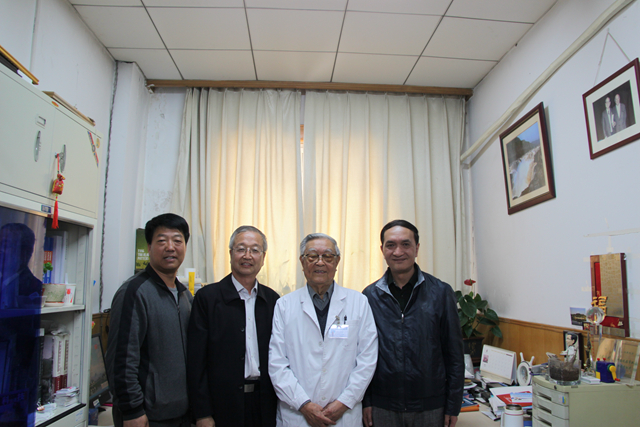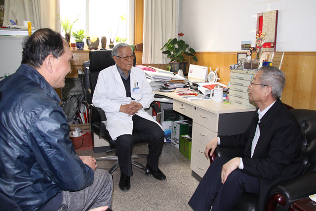 4月13日,受院长张连生和党委书记马启明的委托,原党委书记王树棠、工会主席张军一行前往中国医学科学院肿瘤医院专程看望中国工程院院士、临床肿瘤学专家孙燕教授。虽然老人家已87岁高龄,但仍然思维敏捷,身体健康,每周定期查房和坐诊。当秘书通报定西市人民医院来人看望他时,他忙从办公室迎出来,连声说“老家来人了,欢迎!”。王树棠、张军向孙院士汇报了我院近年来的发展状况,尤其是加入兰大二院医疗集团后医院的变化。院士听后非常高兴,回忆起70年代他与张大为、余宏迢、姜兆侯等一起在定西医院工作、生活的情景,和当年定西医院的同仁们时,他流露出对那片土地和人民的深切眷恋和热爱。他说:“定西永远是自己的第二故乡”。从定西返回北京后,他多次到定西市人民医院,每次来都有新变化。