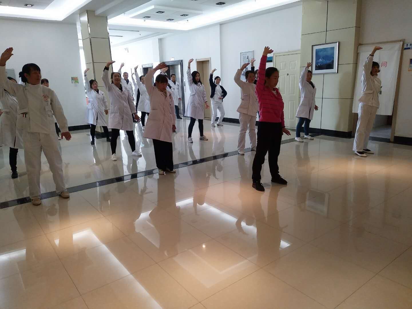 热情迎来蹒跚友,高兴送归健步人。通过“八段锦”练习,既丰富了全院医务人员的业余文化生活,增强了体质,又在全院医患当中弘扬了中医传统文化,对形成良好的医患关系起到潜移默化的作用,使医务人员在紧张、紧凑的工作之余通过运动来调节精神、增强体质,以更加充沛的精力和强健的体魄投入到医疗工作中去。如今,每天的“八段锦”练习,已然融入到了全院医务人员的日常生活,成为医院的一大特色。