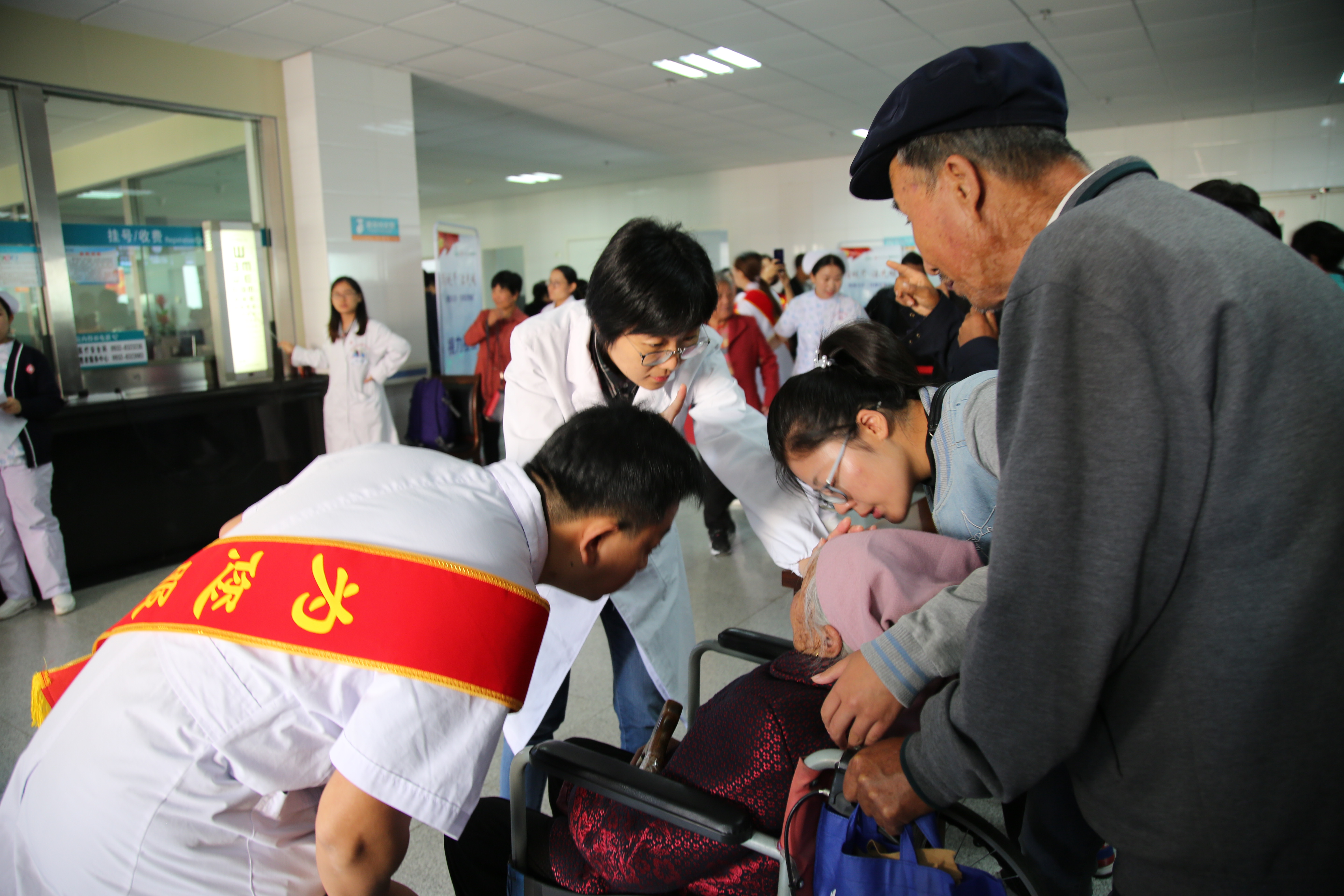 卫生健康部门作为与百姓联系最为紧密的民生部门之一,长期以来将“志愿者”服务与本职工作有机结合。在“不忘初心、牢记使命”主题教育中,全市卫生健康系统将学习与实践充分融合,探索出了一条专业志愿服务的新路子,让“奉献、友爱、互助、进步”的志愿服务精神在系统内部深深扎根,唱响了“健康定西”的公益之歌。 小小志愿站 大大文明窗 对很多人来说,去医院是一件让人头痛的事情:浑身都不舒服,该看哪一科?医院这么大,东南西北都分不清,科室又在哪里?而在定西市人民医院,当患者走进门诊大厅,如果他对就诊有任何疑惑,只要看到“白大褂+红绶带”,就意味着他找到了帮助。帮助患者办理电子健康卡、协助患者挂号、取化验单、指路、导诊,为患者及家属答疑解惑,提供力所能及的帮助……志愿者们忙个不停。