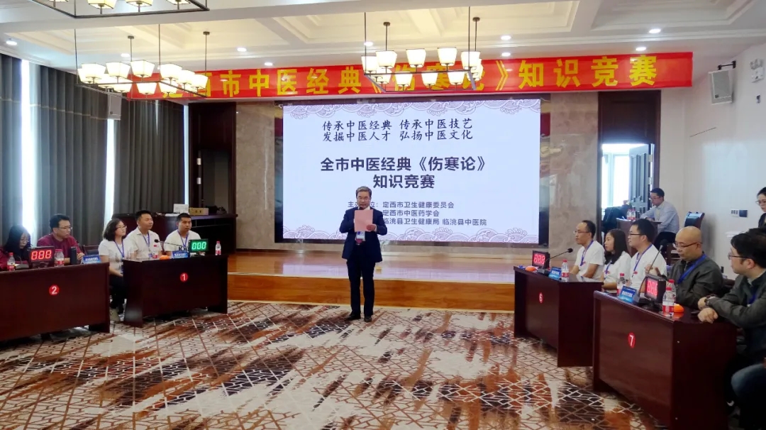 为了更好地传承中医经典、发掘优秀中医人才,9月18下午,由定西市卫健委主办、定西市中医药协会协办、临洮县卫生健康局以及临洮县中医院承办的定西市中医经典《伤寒论》知识竞赛在彩陶之乡甘肃临洮顺利举行,大赛特别邀请甘肃中医药大学教授陈光顺、张晶、陇西中医院内科主任医师杨维平、定西市中医院中医内科主任医师席恒以及临洮县人民医院中医内科主任医师潘星宇为评委专家,与此同时,主办方还成立了仲裁组,确保比赛公平公正。
