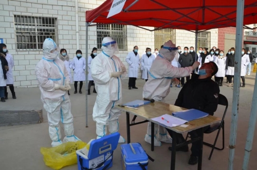 为科学、规范、有序开展传染病疫情预防控制工作,切实提高我县传染病疫情的应急处置能力,本着“平战结合、常备不懈”的原则,全力保障人民群众及医务人员身体健康。2021年1月2日下午,漳县卫生健康局组织县人民医院、县疾控中心医务人员开展新冠肺炎疫情防控综合应急演练。县政府副县长燕永明,卫生健康局主要负责人及医疗机构负责人等在现场观摩了此次演练。 演练背景  2021年1月2日8时40分,漳县人民医院发热门诊接诊了一位名叫张军的患者,男性,52岁,盐井镇盐井村人。患者自诉在四川成都郫都区打工,于12月27日20:30从成都乘K2616次火车,次日6点到漳县火车站,由其儿子张小伟开私家车从火车站接到家,患者一直居住在家中无外出。患者家庭成员:妻子、儿子。患者12月30日感觉咽部发痒,有轻微咳嗽,自认为感冒,在家中服用感冒冲剂和银翘解毒片,无好转。 2日上午9时,漳县人民医院组织专家组进行会诊,病例被诊断为“新冠肺炎疑似病例”,收入单间隔离病房治疗,并向漳县县疾控中心报告了疫情,同时登录传染病网络直报系统进行了报告。该患者疫情信息由县→市→省逐级进行了上报。专业人员开展了相应的流调、采样、疫点消毒等工作。