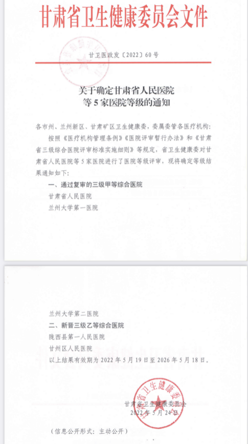 喜报!陇西县人民医院新晋三级乙等综合医院