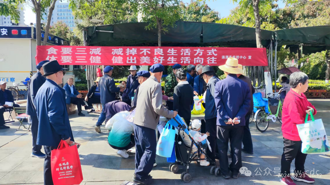 本次宣传结合体重管理、“9.15 ”减盐周、全国爱牙日、健康骨骼等宣传活动,深入推进“三减三健”专项行动,以体重管理为突破口,进一步传播和普及健康生活方式知识,倡导公众树牢“吃动平衡”“三减三健”“自身健康第一责任人”等健康理念,掌握主动健康技能,践行文明健康生活方式,营造全民参与、人人受益的良好社会氛围。 宣传采用传统的悬挂横幅、发放宣传折页、健康宣讲的方式,活动现场共悬挂主题横幅1条、发放“三减三健”宣传折页600余份,其他各类宣传材料800余份,监测体重、身高、血压、血糖累计50余人。