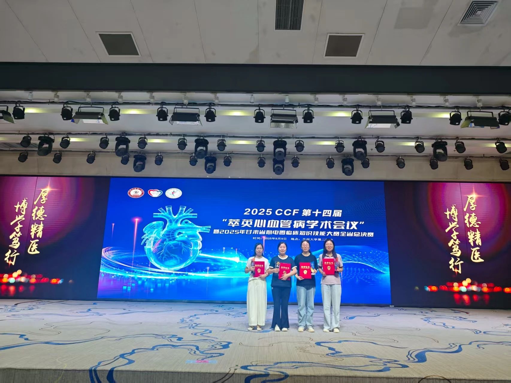 近日,定西市人民医院在省级医学技能赛事中捷报频传,参赛团队凭借扎实的专业功底和出色的实战能力屡创佳绩,充分展现了医院在专科诊疗领域的过硬实力。 8月9 日,在 “2025 甘肃省心电图临床知识技能大赛” 全省总决赛中,参赛队伍团结协作、精准研判,一路过关斩将,最终荣获团体二等奖。其中,功能科赵胜花、张璐两位医师凭借精湛的专业技能和稳定的临场发挥,双双斩获个人二等奖;CCU 于英医师亦表现优异,荣获个人三等奖。