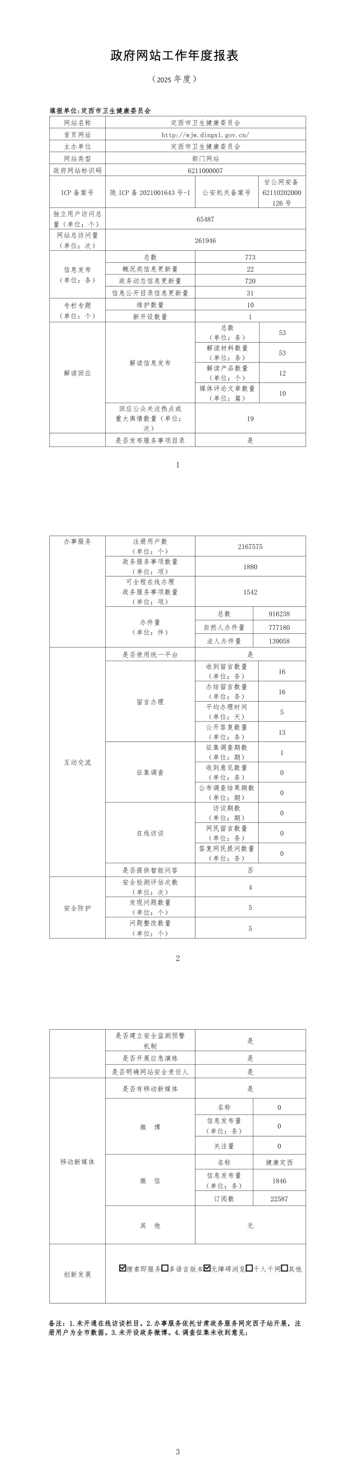 定西市卫生健康委员会2025年政府网站工作年度报表