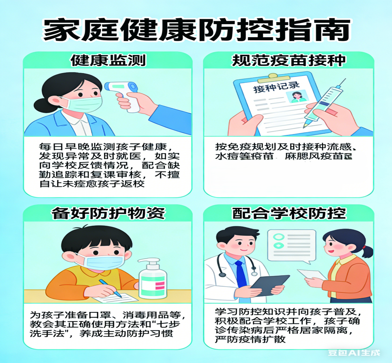 家庭是健康第一道防线,家长需配合学校,形成防控合力。